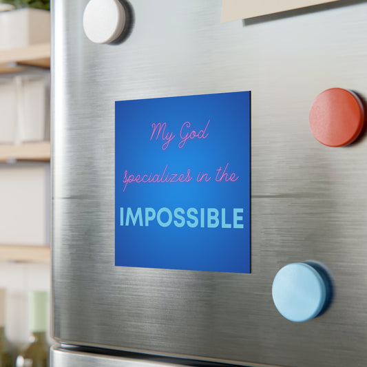 My God Specializes in the Impossible - Square Magnet