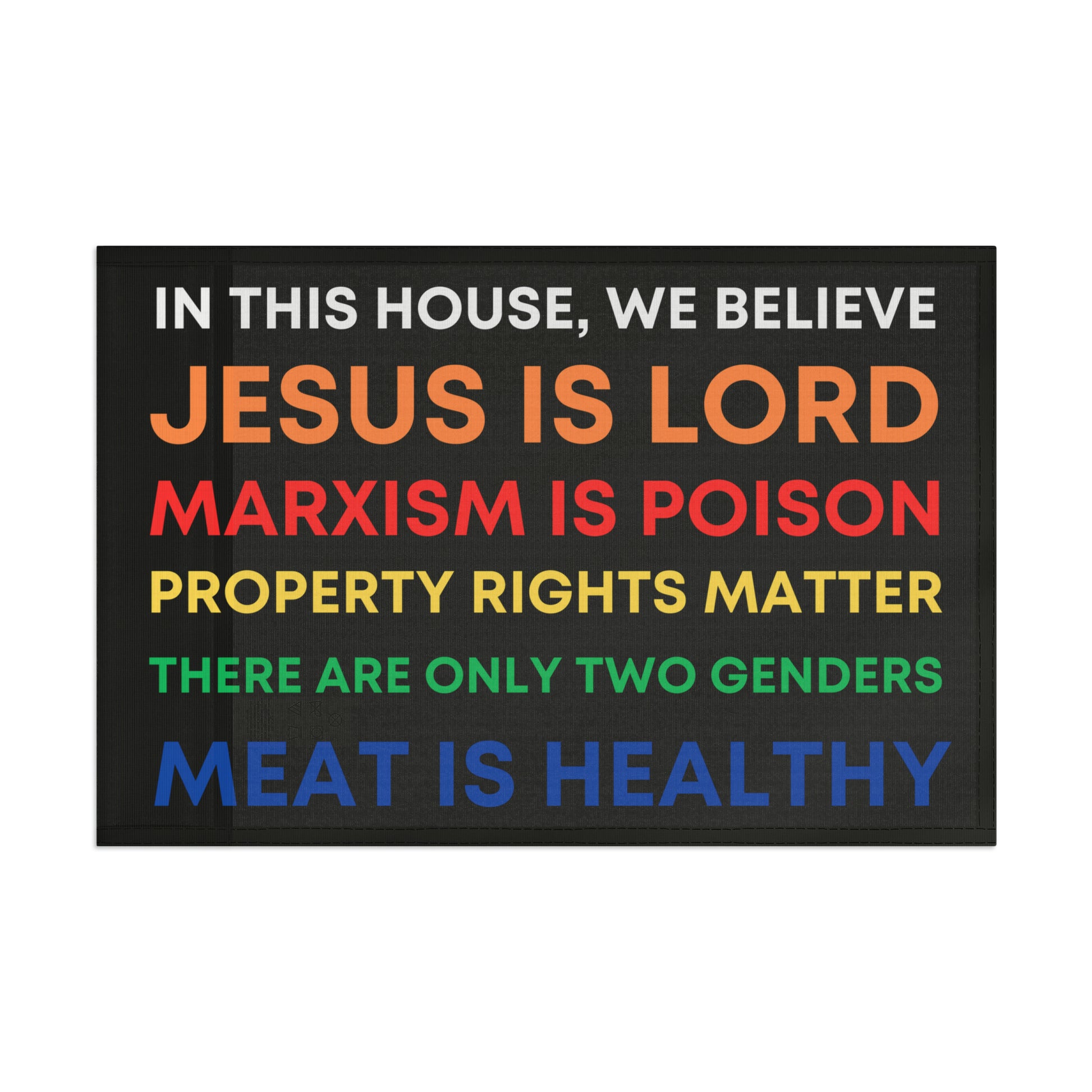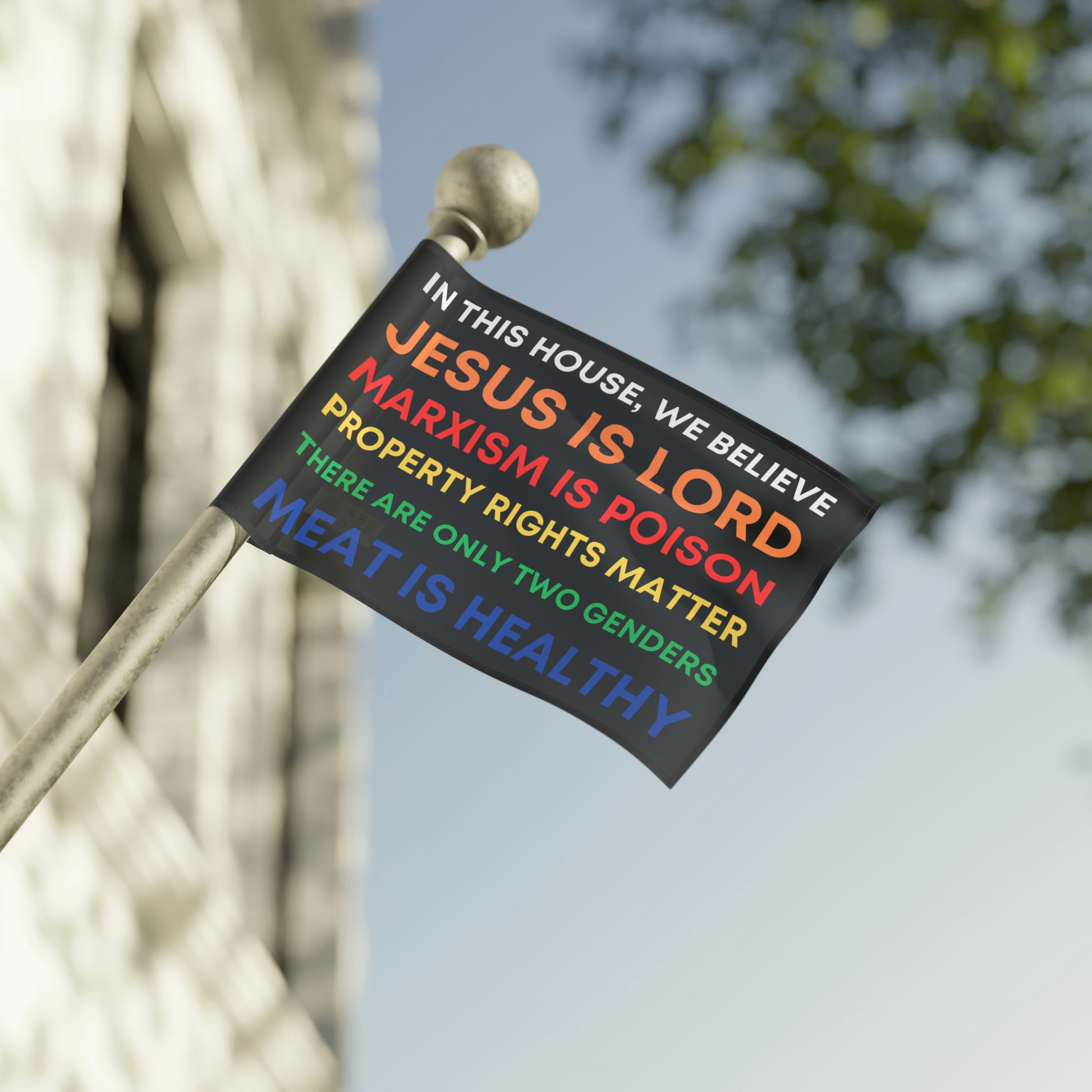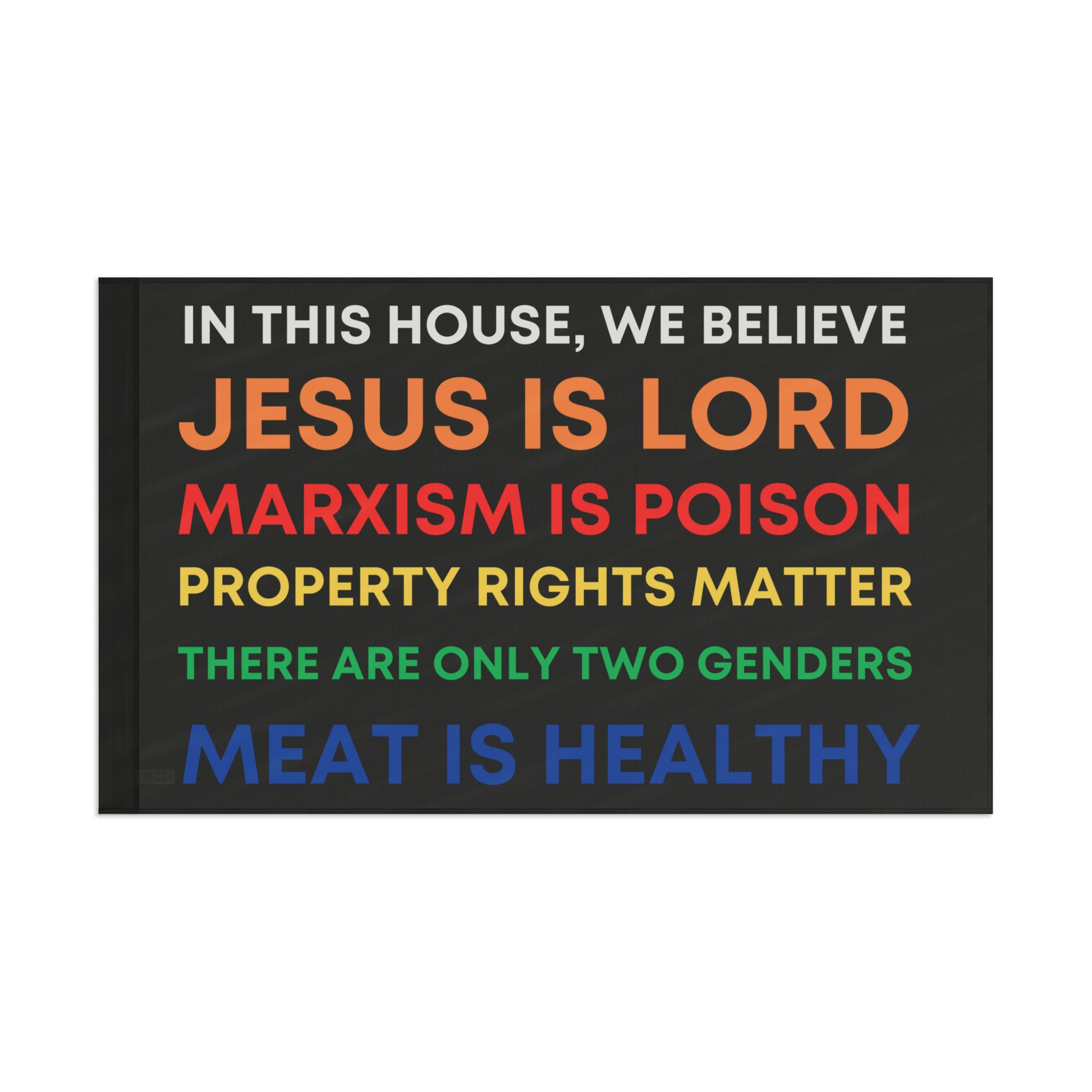 This is Honor State's answer to those "In This House, We Believe..." slogans that started popping up all over American cities around the summer of 2020... now available as a flag.