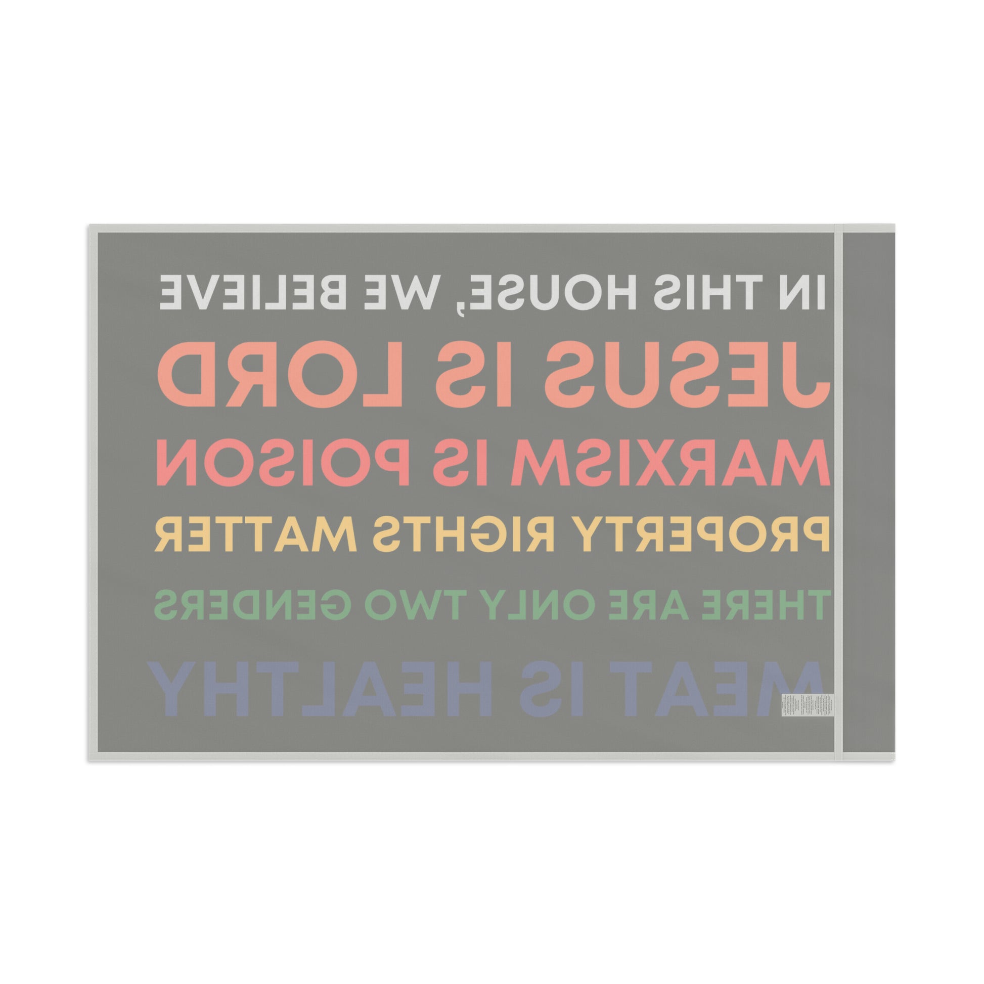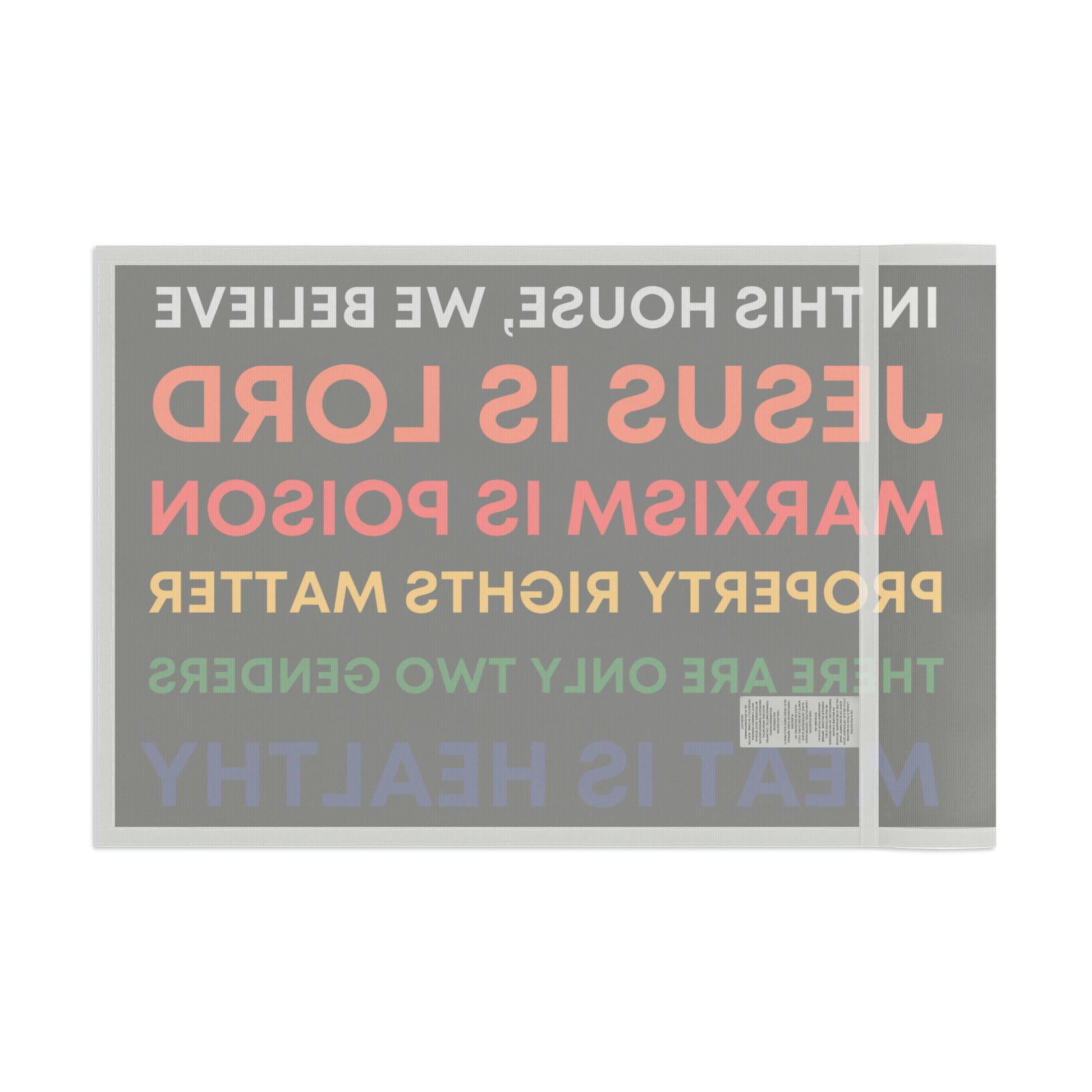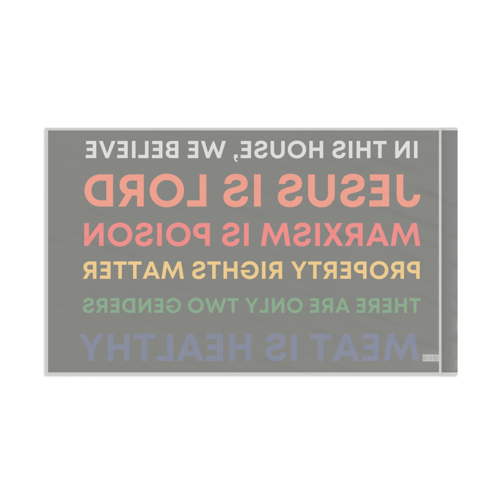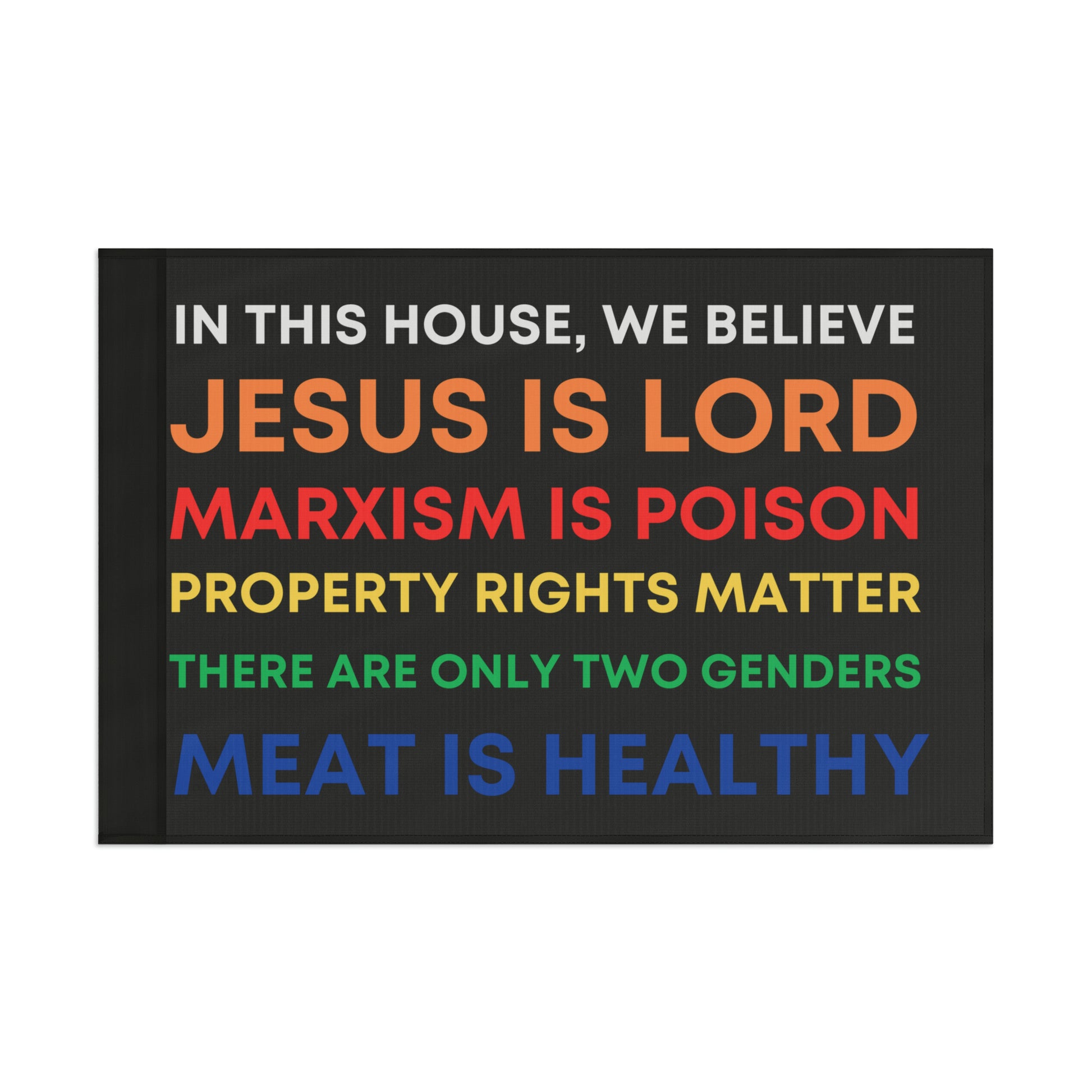This is Honor State's answer to those "In This House, We Believe..." slogans that started popping up all over American cities around the summer of 2020... now available as a flag.